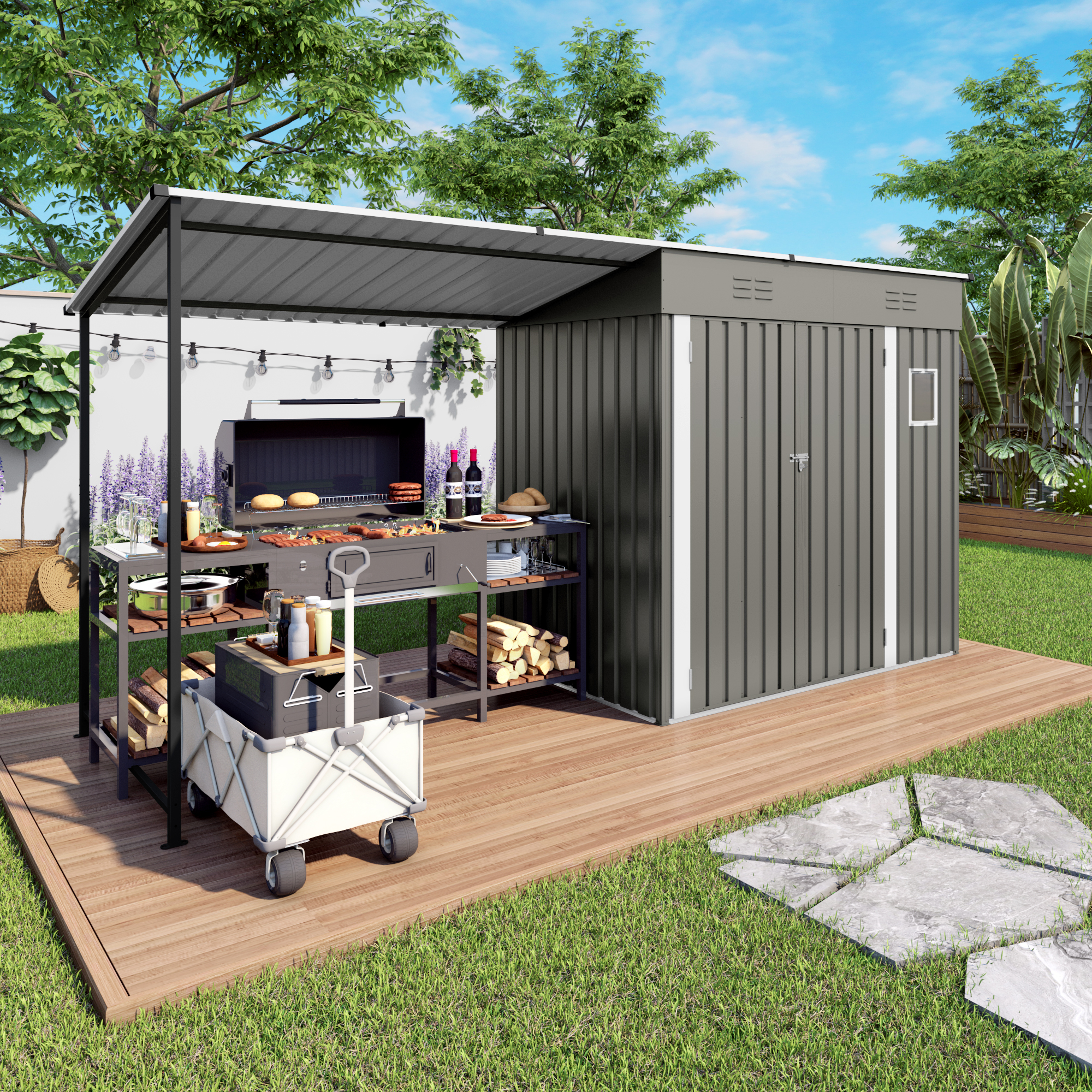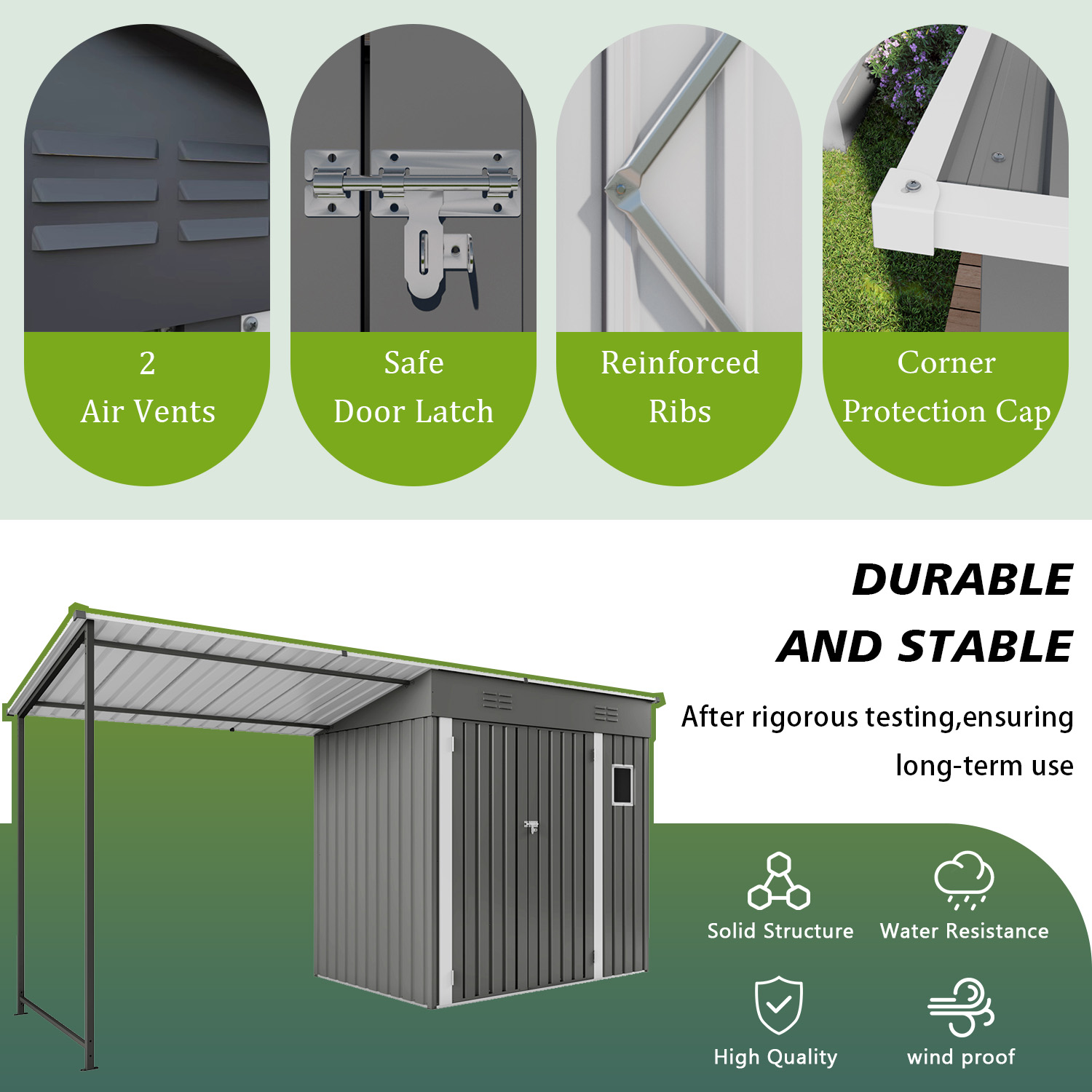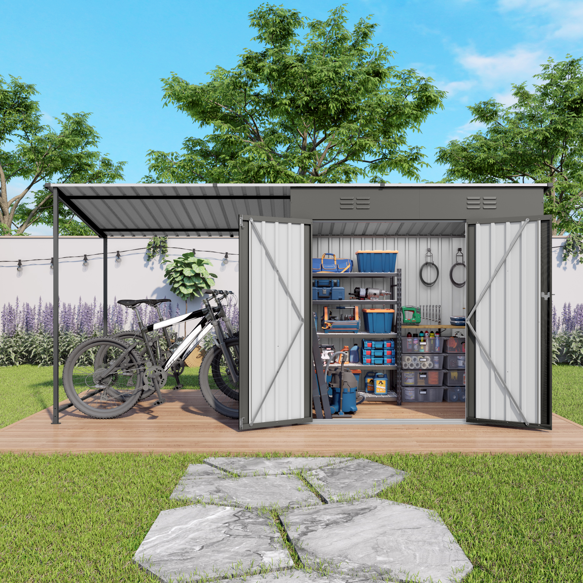 - Practical Lean-To Organizer Space: Covered shelter keeps outdoor gear dry, tidy and easy to access, protecting items from sun, rain and daily weather exposure.