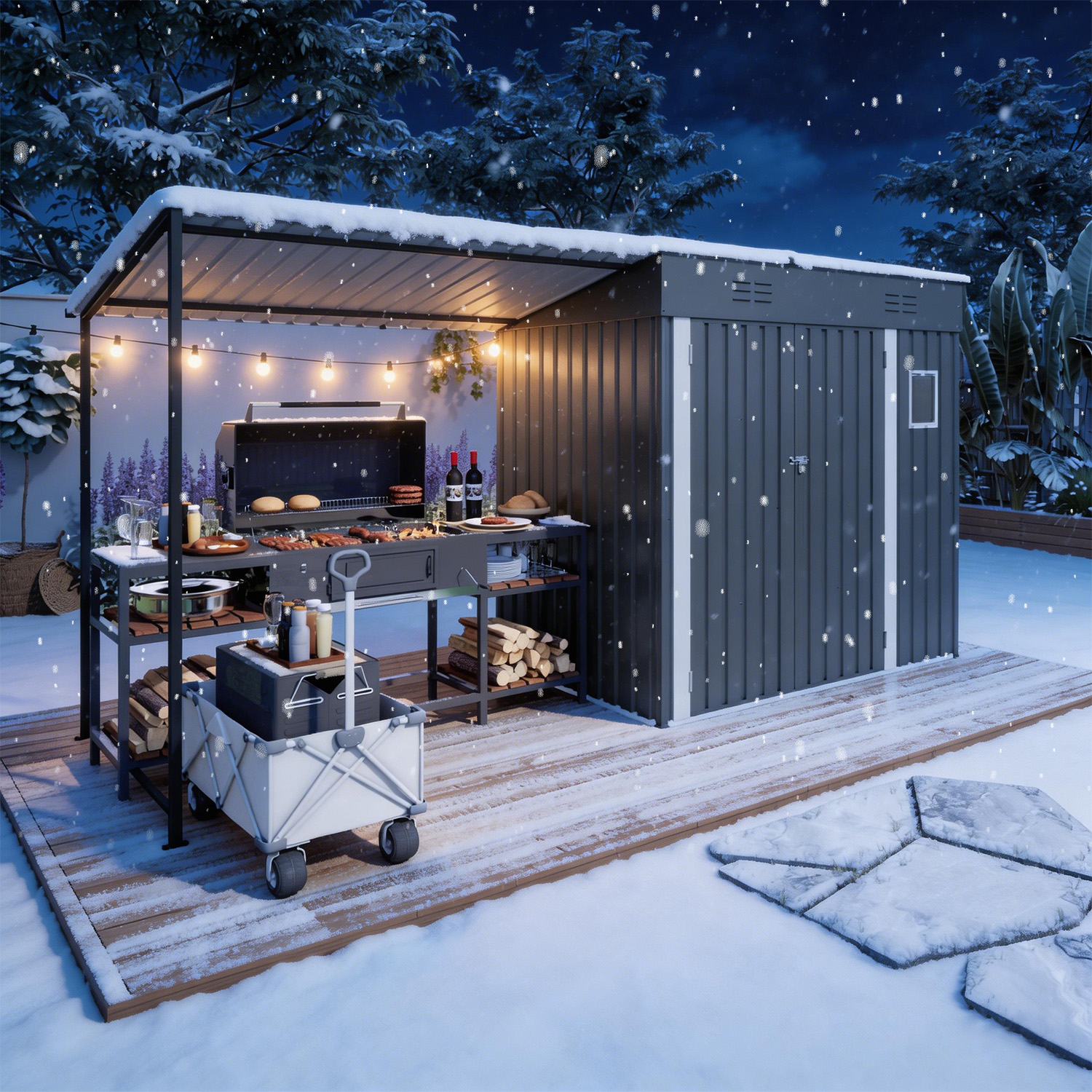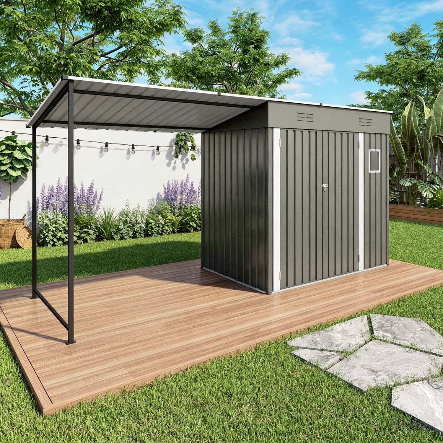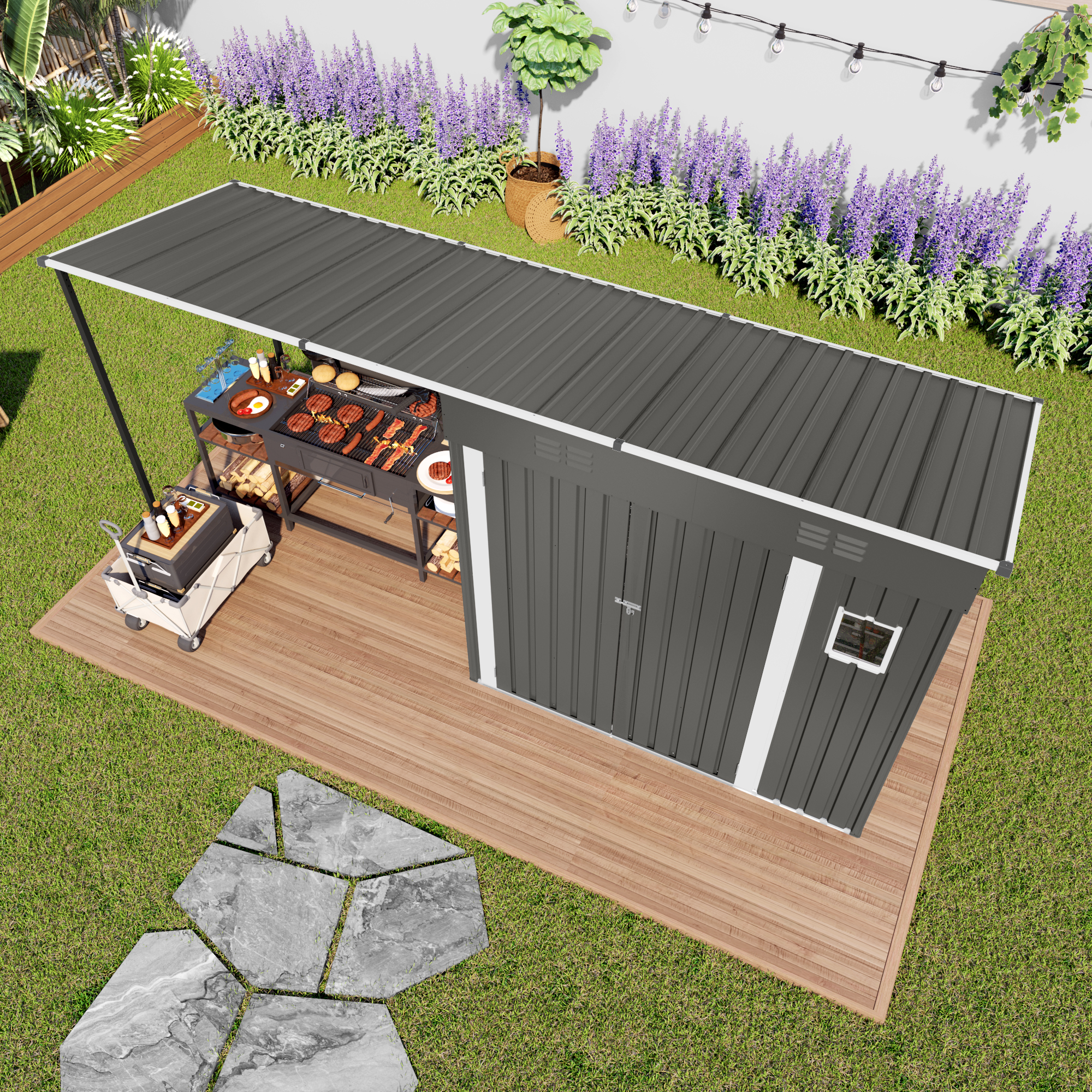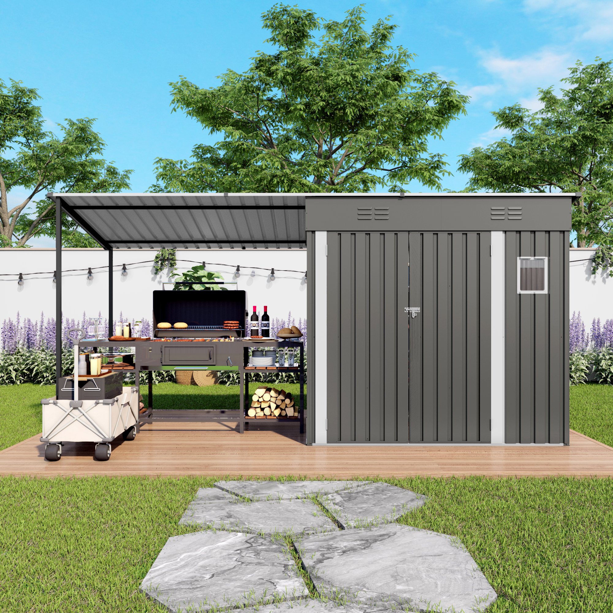 - Practical Lean-To Organizer Space: Covered shelter keeps outdoor gear dry, tidy and easy to access, protecting items from sun, rain and daily weather exposure.