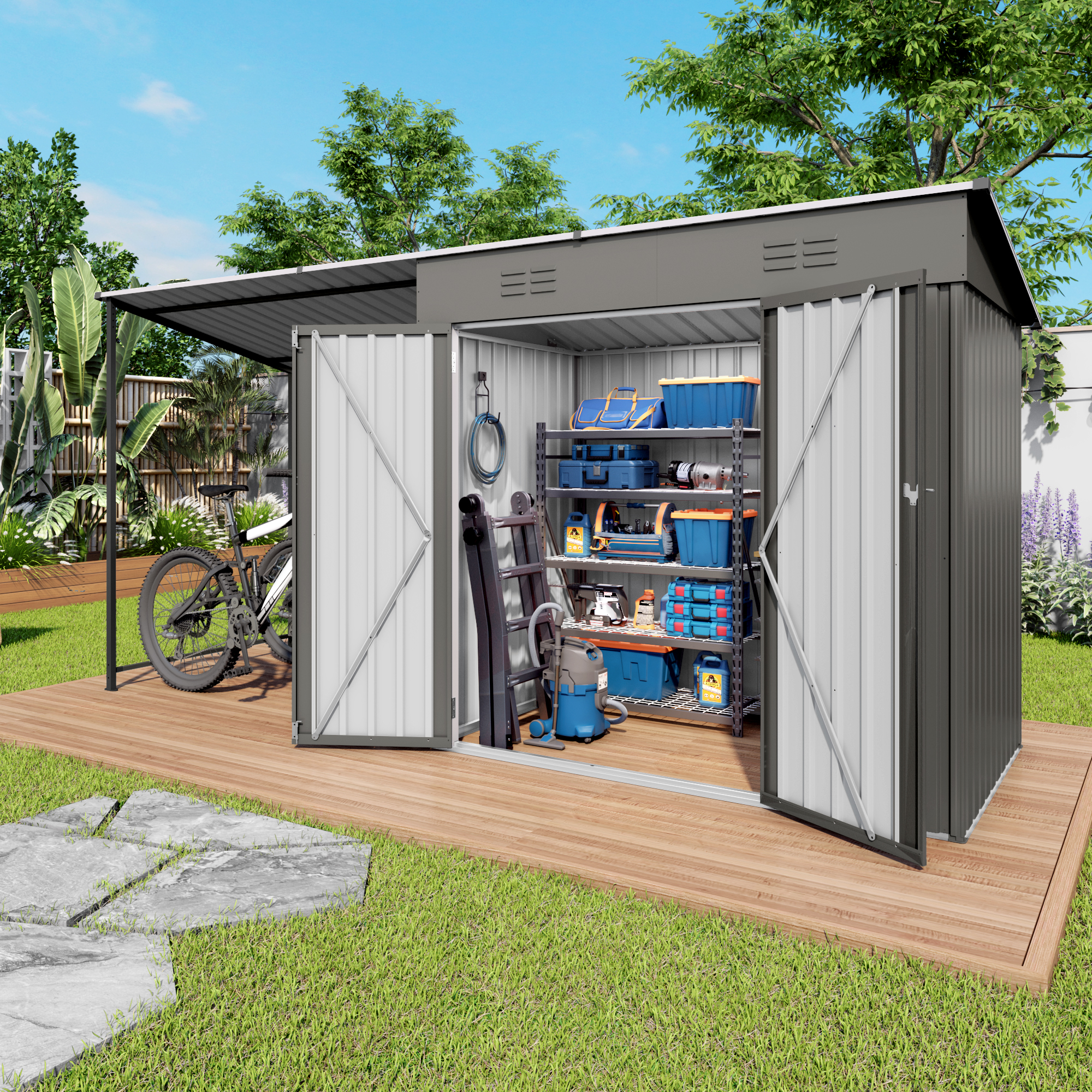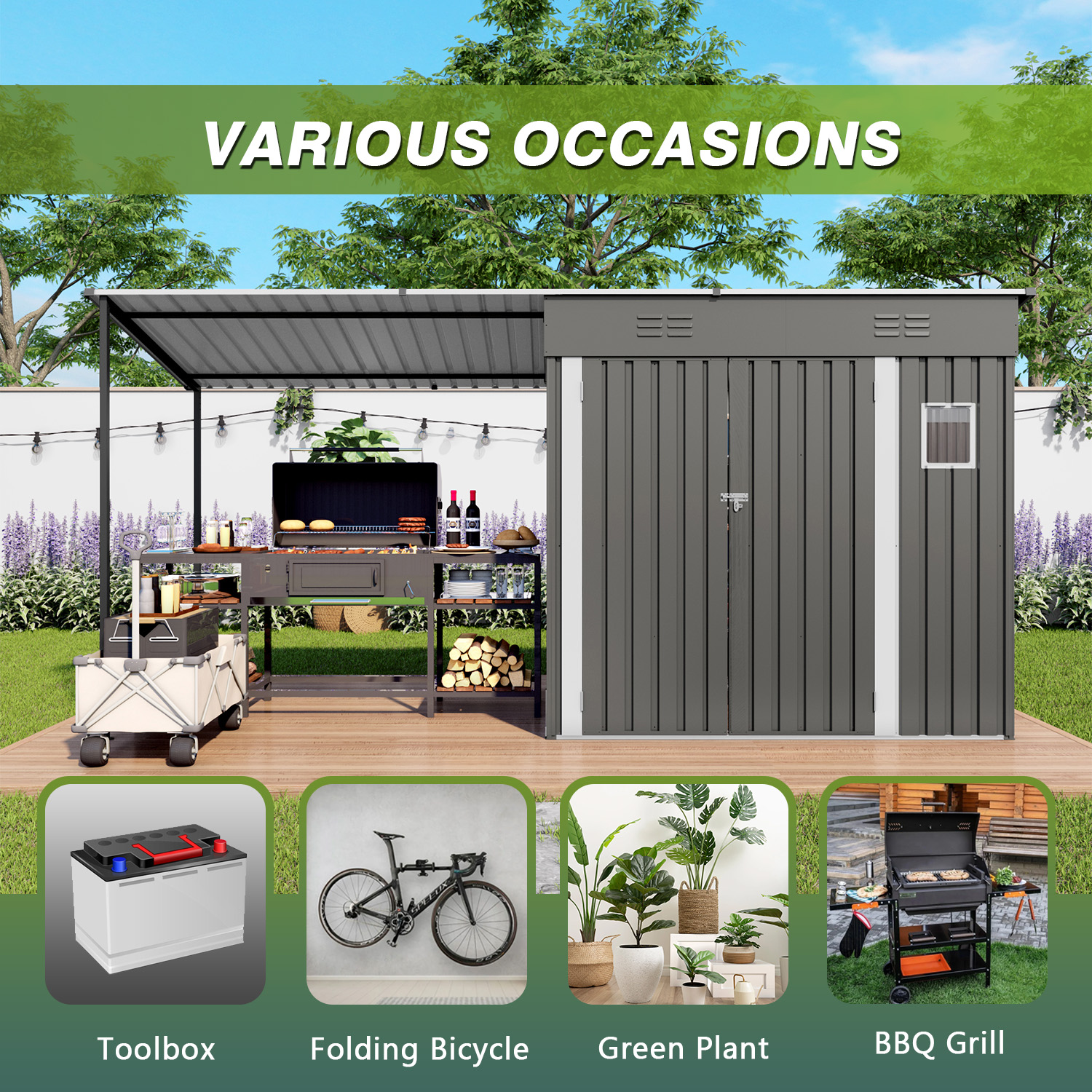 - Multi-Scene Outdoor Versatility: Ideal for tool storage, equipment arrangement and patio shading. Perfectly keeps backyards, lawns and gardens neat and well-organized all season long.