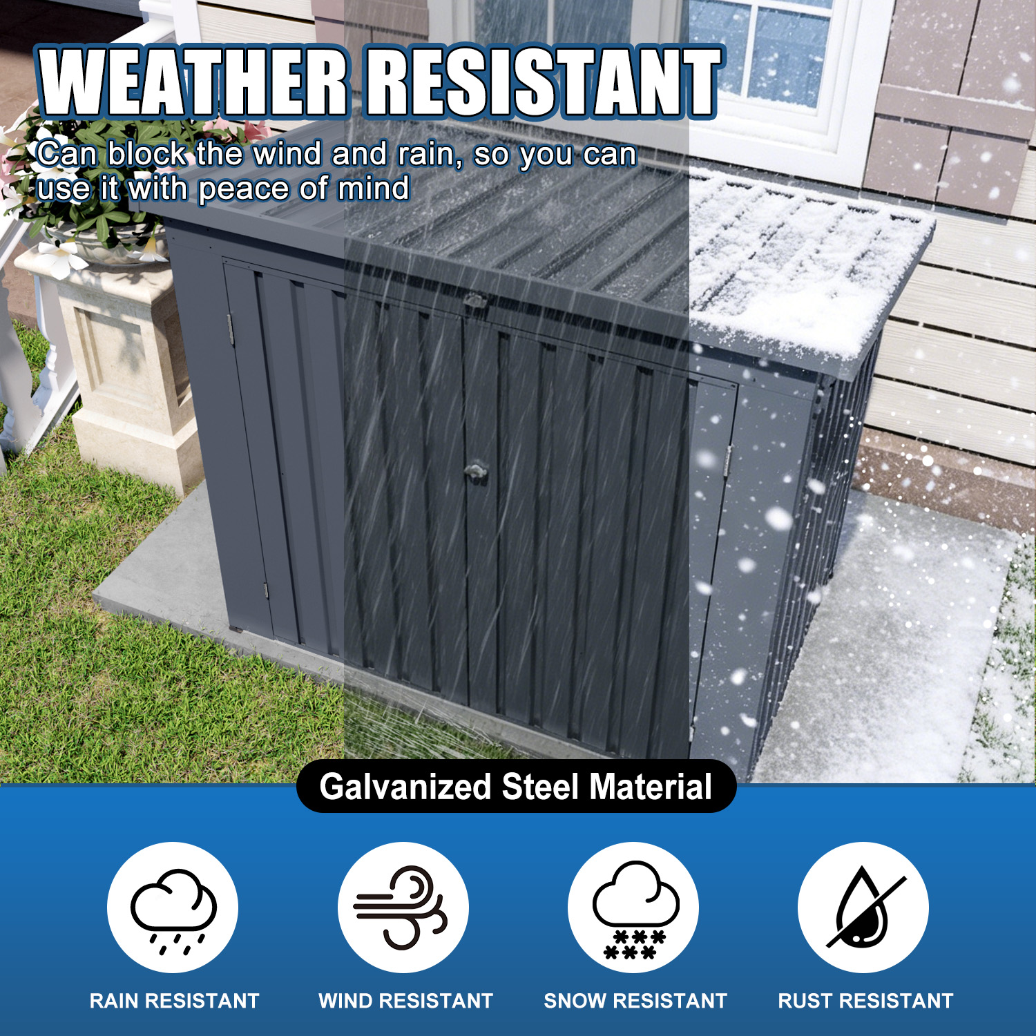 - Premium Weatherproof Construction:Crafted from high-quality, thick materials, this storage shed is built to last. It is fully waterproof, UV-resistant, and rust-proof, providing exceptional durability and protection for your belongings in all weather conditions.