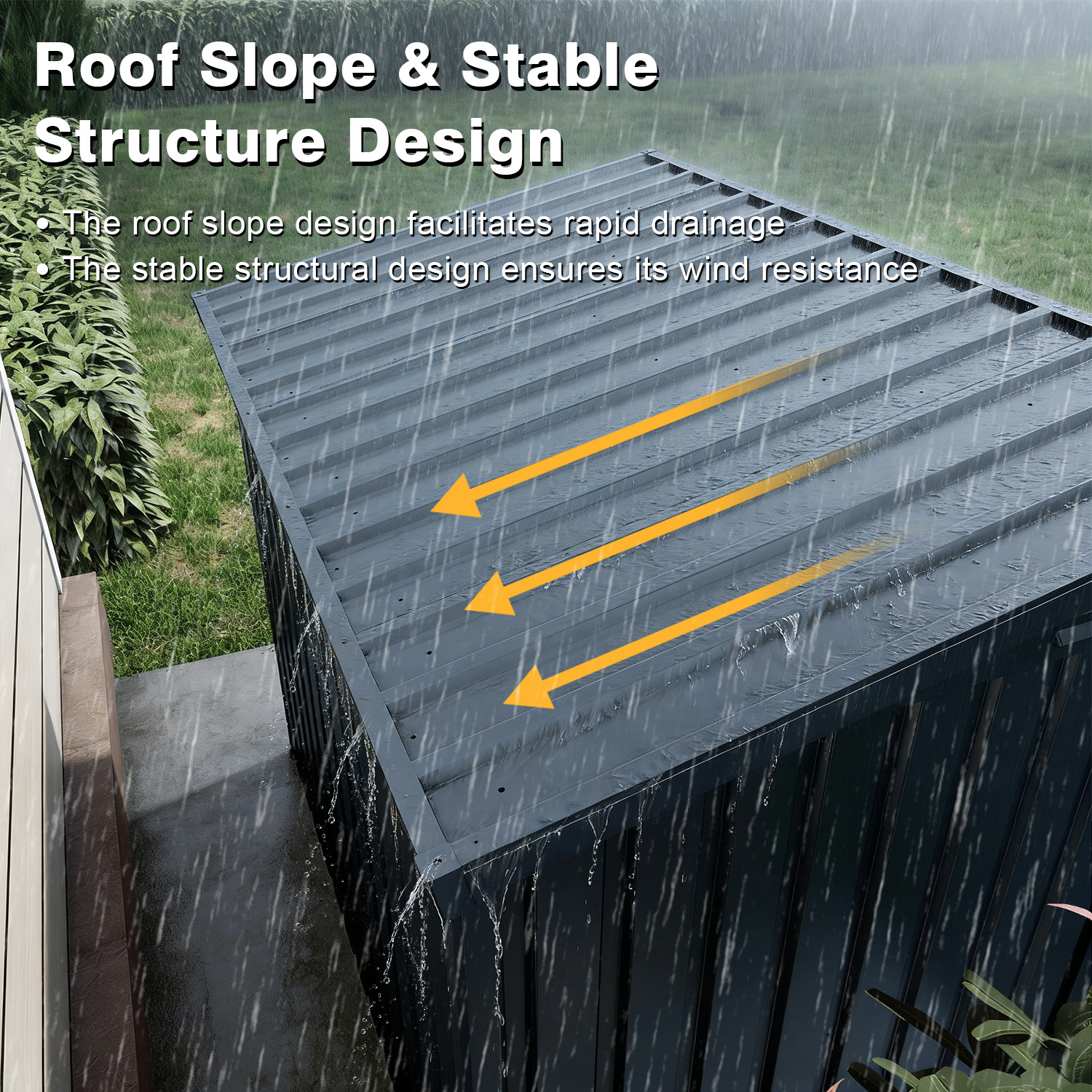 - Smart Ventilation & Drainage System:The sloped roof design efficiently drains rain and snow quickly, preventing water buildup and rust. If used as a pet house, the side ventilation holes ensure optimal air circulation, keeping your pets cool and comfortable.